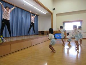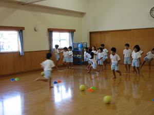 柔軟体操やダンス、友だちと一緒にボールを使ったルールのあるゲームをしたりと、たくさん身体を動かしました。